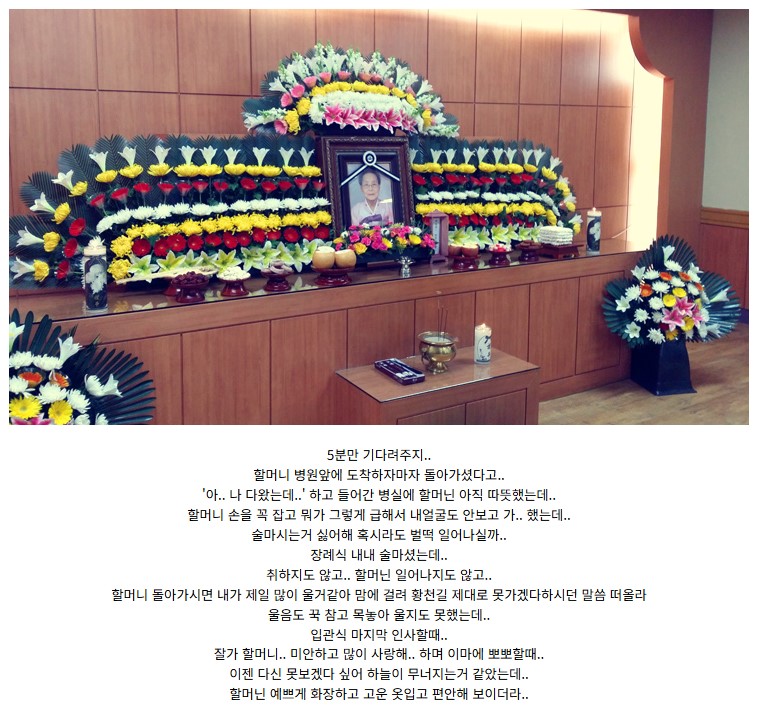 그런 할머니가 돌아가신 날은 내게 하늘이 무너지는 것과 같은 아픔과 슬픔이었다.